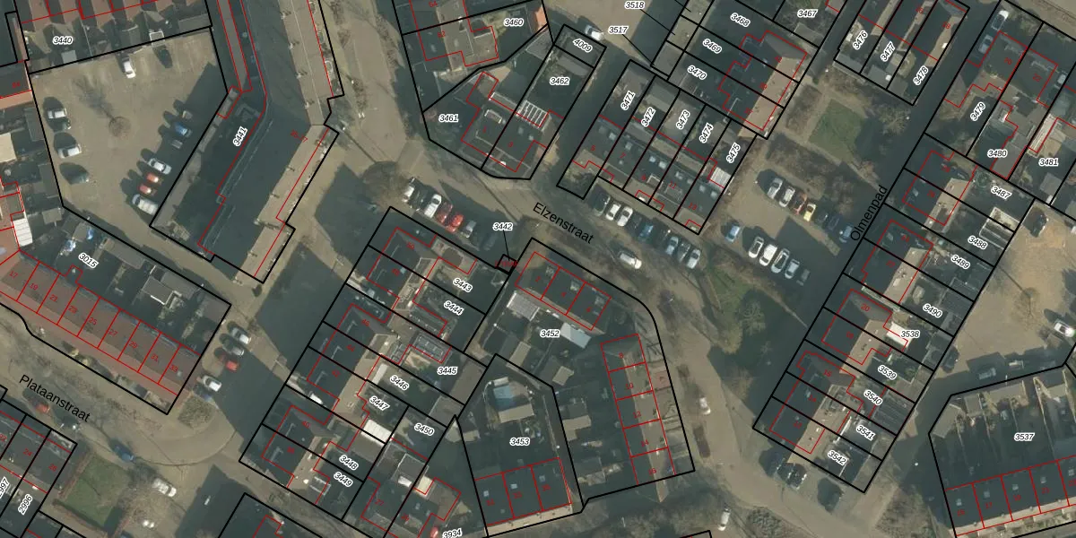 Het perceel waarop Elzenstraat 2 staat heeft een oppervlakte van 1064 m². Dit is een zeer groot perceel. De perceeloppervlakte wordt geregistreerd door het Kadaster. Gedetailleerde informatie over de maten van dit perceel kunt u vinden in het rapport Kadastrale kaart met maatvoering van Elzenstraat 2.