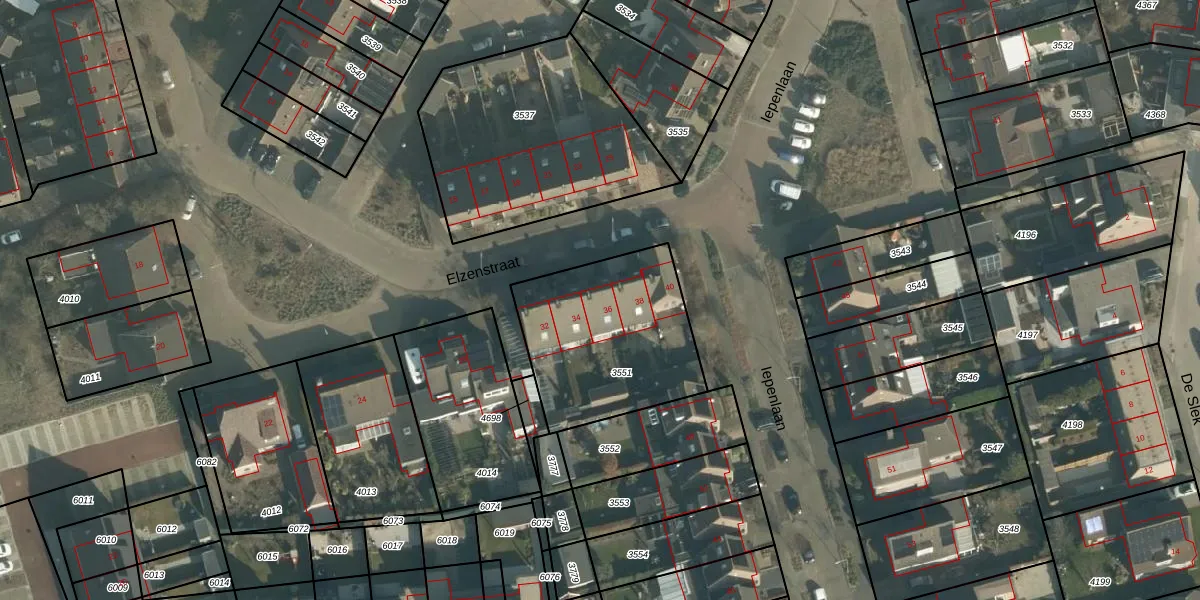 Elzenstraat 36 is gelegen op kadastraal perceel MDE01S3551. Deze kadastrale aanduiding is uniek en wordt gebruikt door het Kadaster om eigendomsrechten en andere zakelijke rechten vast te leggen. Het perceel maakt onderdeel uit van de kadastrale gemeente Made en Drimmelen.