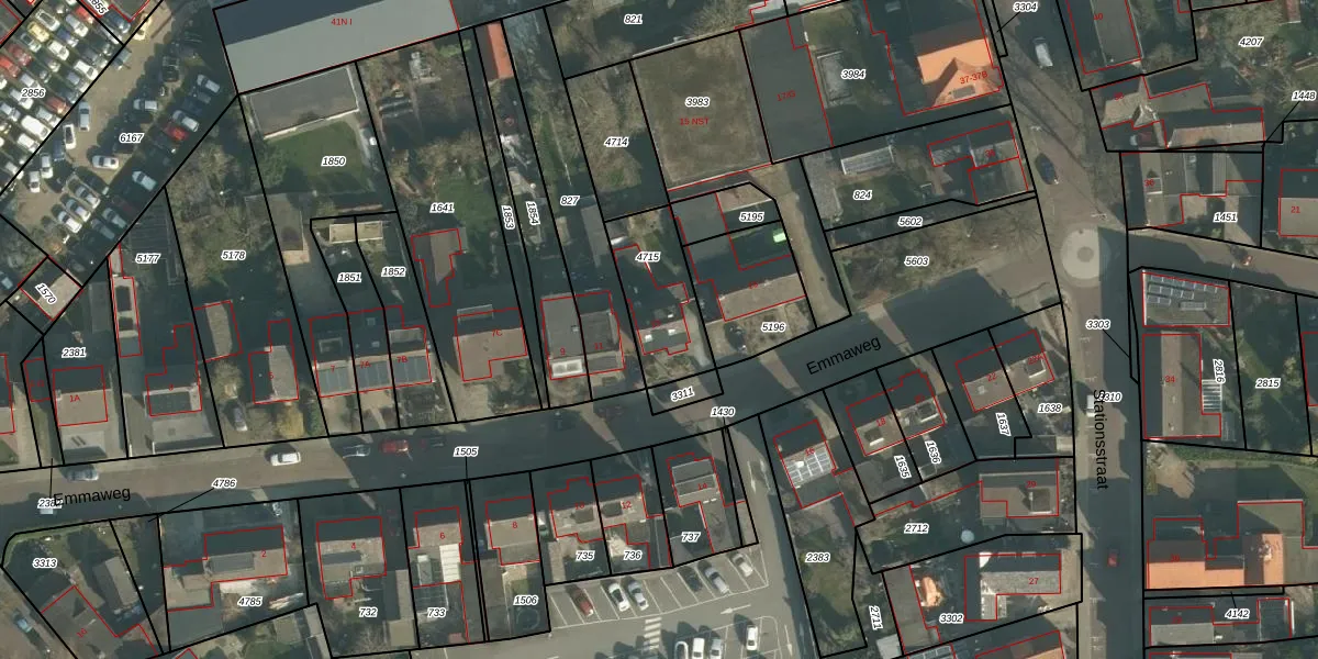 Emmaweg 13 is gelegen op kadastraal perceel MDE01S4715. Deze kadastrale aanduiding is uniek en wordt gebruikt door het Kadaster om eigendomsrechten en andere zakelijke rechten vast te leggen. Het perceel maakt onderdeel uit van de kadastrale gemeente Made en Drimmelen.