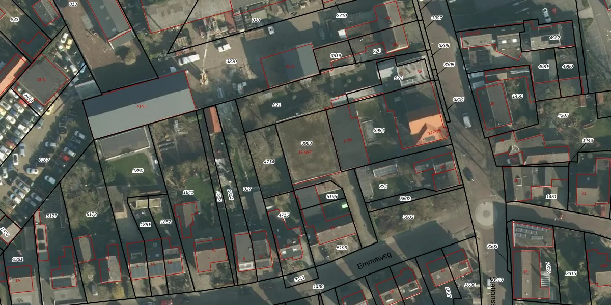 Emmaweg 15-NST is gelegen op kadastraal perceel MDE01S3983. Deze kadastrale aanduiding is uniek en wordt gebruikt door het Kadaster om eigendomsrechten en andere zakelijke rechten vast te leggen. Het perceel maakt onderdeel uit van de kadastrale gemeente Made en Drimmelen.
