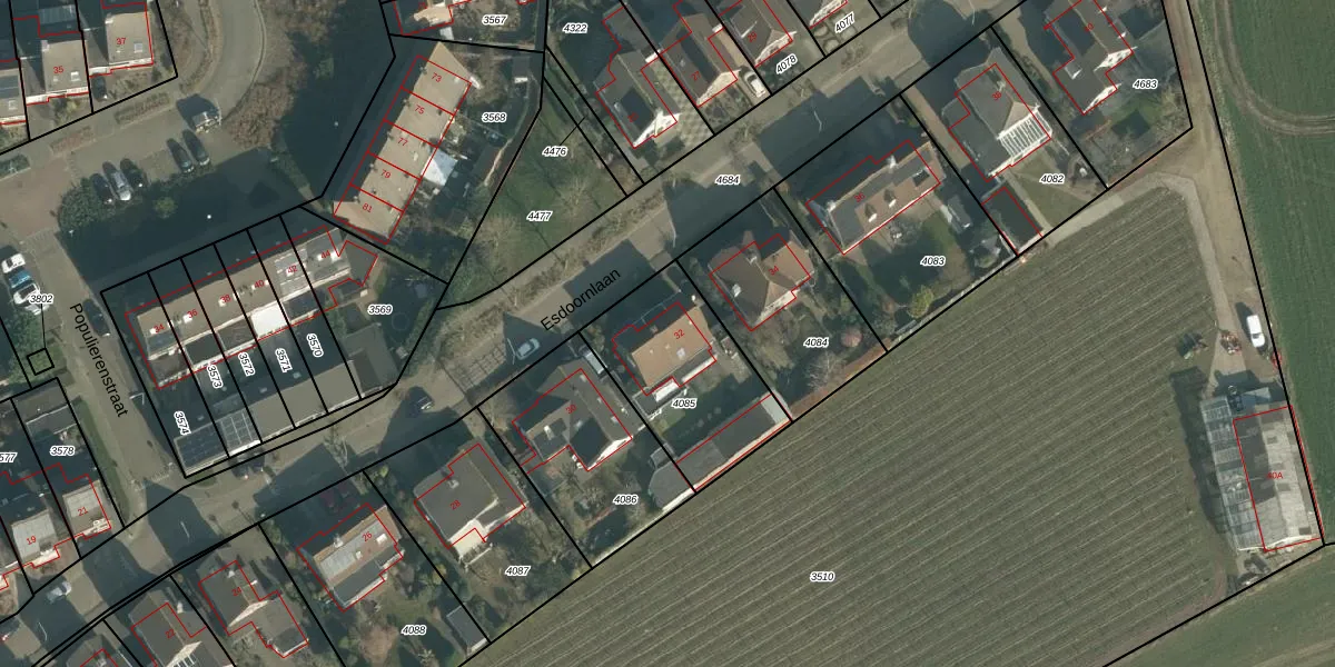 Het perceel waarop Esdoornlaan 32 staat heeft een oppervlakte van 545 m². Dit is een groot perceel. De perceeloppervlakte wordt geregistreerd door het Kadaster. Gedetailleerde informatie over de maten van dit perceel kunt u vinden in het rapport Kadastrale kaart met maatvoering van Esdoornlaan 32.