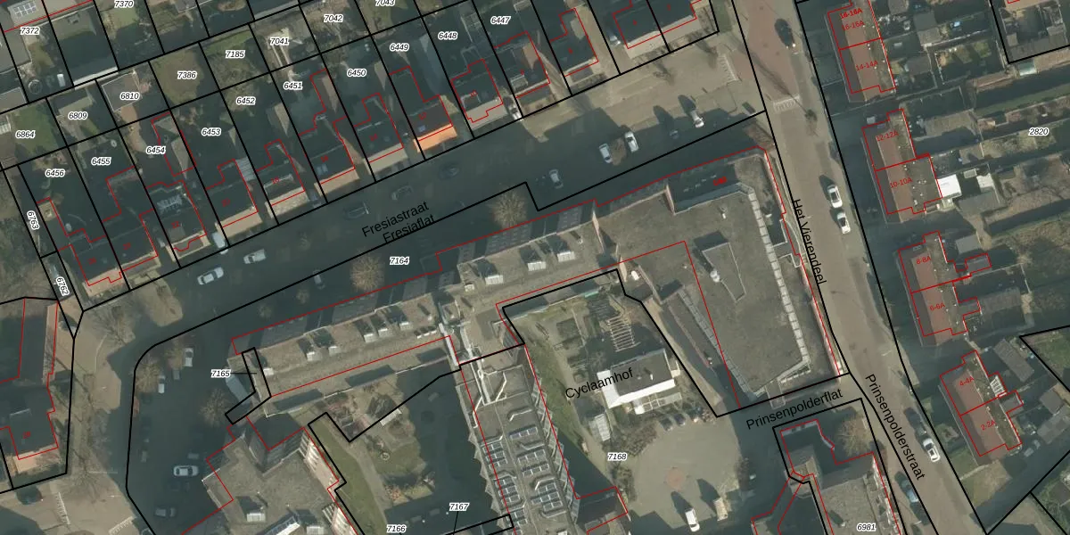 Het perceel waarop Fresiaflat 23 staat heeft een oppervlakte van 5560 m². Dit is een zeer groot perceel. De perceeloppervlakte wordt geregistreerd door het Kadaster. Gedetailleerde informatie over de maten van dit perceel kunt u vinden in het rapport Kadastrale kaart met maatvoering van Fresiaflat 23.
