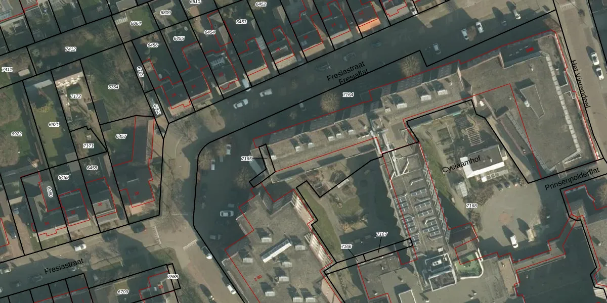 Het perceel waarop Fresiaflat 61 staat heeft een oppervlakte van 5560 m². Dit is een zeer groot perceel. De perceeloppervlakte wordt geregistreerd door het Kadaster. Gedetailleerde informatie over de maten van dit perceel kunt u vinden in het rapport Kadastrale kaart met maatvoering van Fresiaflat 61.
