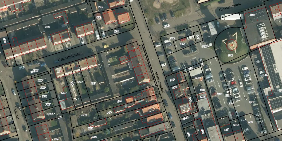 Geraniumstraat 11-A is gelegen op kadastraal perceel MDE01H7547. Deze kadastrale aanduiding is uniek en wordt gebruikt door het Kadaster om eigendomsrechten en andere zakelijke rechten vast te leggen. Het perceel maakt onderdeel uit van de kadastrale gemeente Made en Drimmelen.