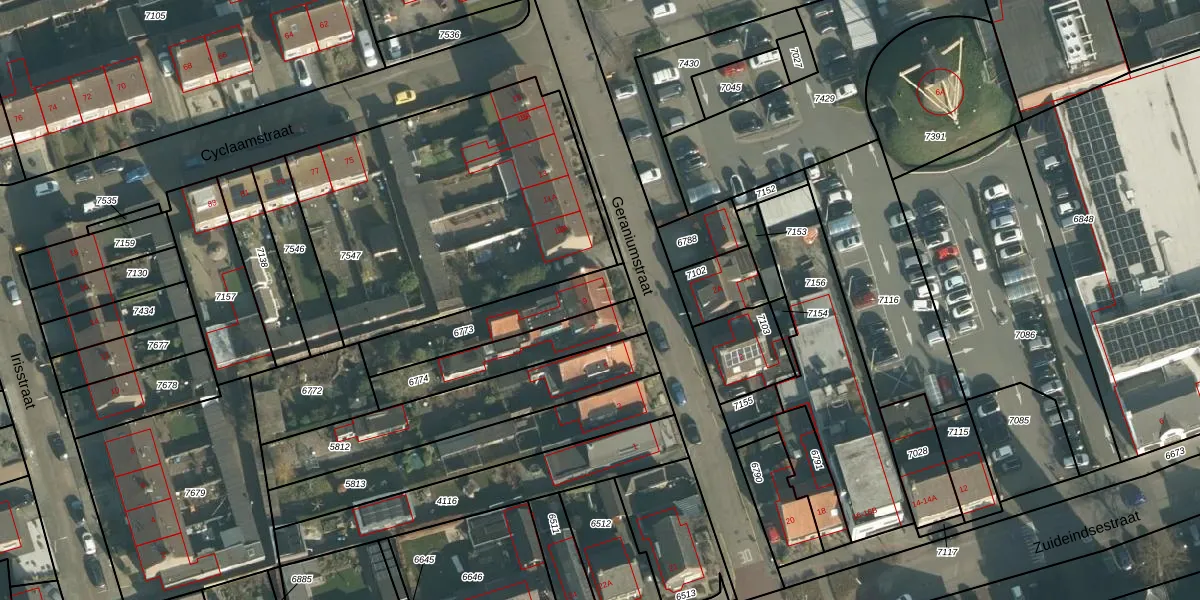 Geraniumstraat 9 is gelegen op kadastraal perceel MDE01H6773. Deze kadastrale aanduiding is uniek en wordt gebruikt door het Kadaster om eigendomsrechten en andere zakelijke rechten vast te leggen. Het perceel maakt onderdeel uit van de kadastrale gemeente Made en Drimmelen.