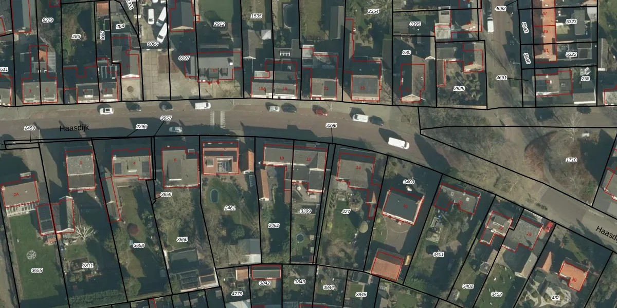 Gebruik de zoekbalk of klik op een perceel voor informatie over de adressen binnen dit perceel.