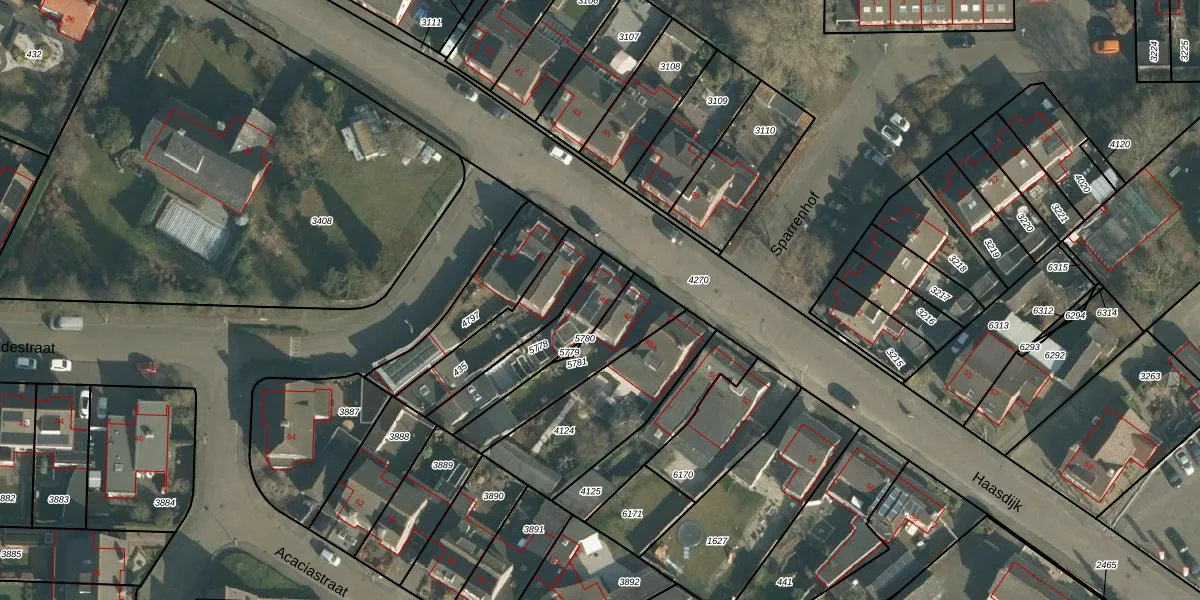 Gebruik de zoekbalk of klik op een perceel voor informatie over de adressen binnen dit perceel.