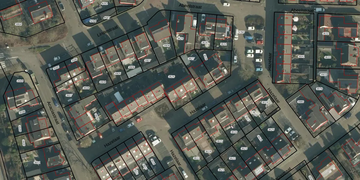 Het perceel waarop Hazelaar 15 staat heeft een oppervlakte van 1129 m². Dit is een zeer groot perceel. De perceeloppervlakte wordt geregistreerd door het Kadaster. Gedetailleerde informatie over de maten van dit perceel kunt u vinden in het rapport Kadastrale kaart met maatvoering van Hazelaar 15.