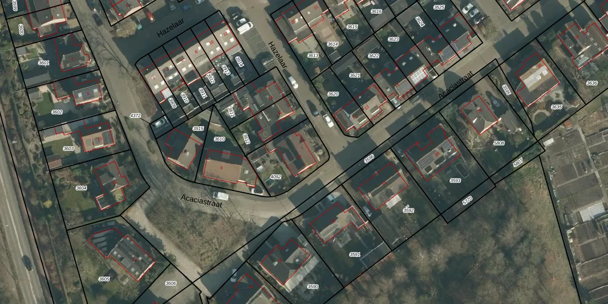 Het perceel waarop Hazelaar 18 staat heeft een oppervlakte van 388 m². Dit is een groot perceel. De perceeloppervlakte wordt geregistreerd door het Kadaster. Gedetailleerde informatie over de maten van dit perceel kunt u vinden in het rapport Kadastrale kaart met maatvoering van Hazelaar 18.