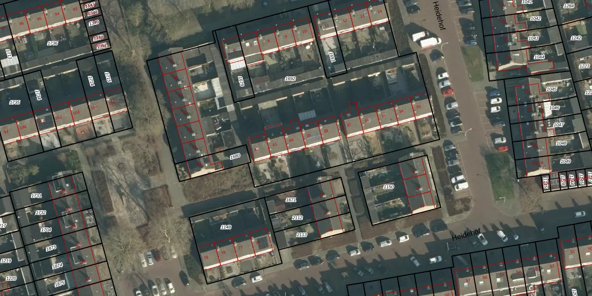 Het perceel waarop Heidehof 40 staat heeft een oppervlakte van 3907 m². Dit is een zeer groot perceel. De perceeloppervlakte wordt geregistreerd door het Kadaster. Gedetailleerde informatie over de maten van dit perceel kunt u vinden in het rapport Kadastrale kaart met maatvoering van Heidehof 40.