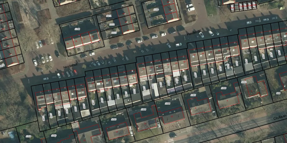 Gebruik de zoekbalk of klik op een perceel voor informatie over de adressen binnen dit perceel.