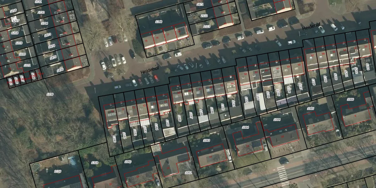 Het perceel waarop Heidehof 68 staat heeft een oppervlakte van 181 m². Dit is een middelgroot perceel. De perceeloppervlakte wordt geregistreerd door het Kadaster. Gedetailleerde informatie over de maten van dit perceel kunt u vinden in het rapport Kadastrale kaart met maatvoering van Heidehof 68.