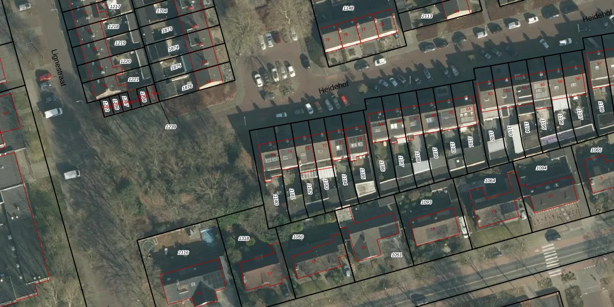 Het perceel waarop Heidehof 73 staat heeft een oppervlakte van 177 m². Dit is een middelgroot perceel. De perceeloppervlakte wordt geregistreerd door het Kadaster. Gedetailleerde informatie over de maten van dit perceel kunt u vinden in het rapport Kadastrale kaart met maatvoering van Heidehof 73.