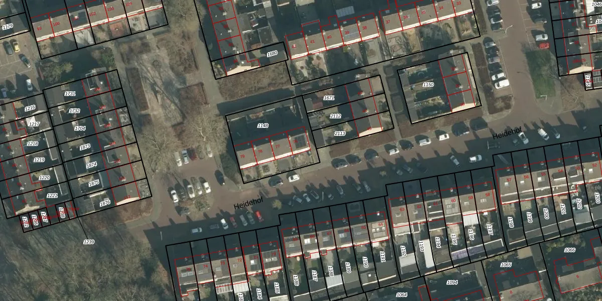 Het perceel waarop Heidehof 76 staat heeft een oppervlakte van 612 m². Dit is een groot perceel. De perceeloppervlakte wordt geregistreerd door het Kadaster. Gedetailleerde informatie over de maten van dit perceel kunt u vinden in het rapport Kadastrale kaart met maatvoering van Heidehof 76.