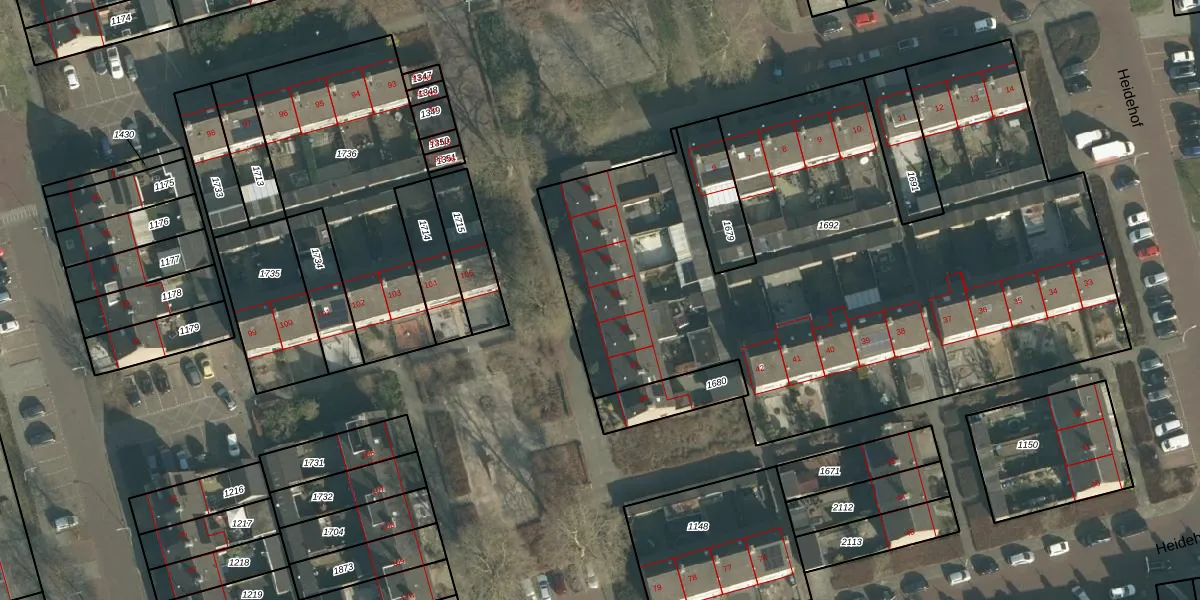 Het perceel waarop Heidehof 83 staat heeft een oppervlakte van 3907 m². Dit is een zeer groot perceel. De perceeloppervlakte wordt geregistreerd door het Kadaster. Gedetailleerde informatie over de maten van dit perceel kunt u vinden in het rapport Kadastrale kaart met maatvoering van Heidehof 83.