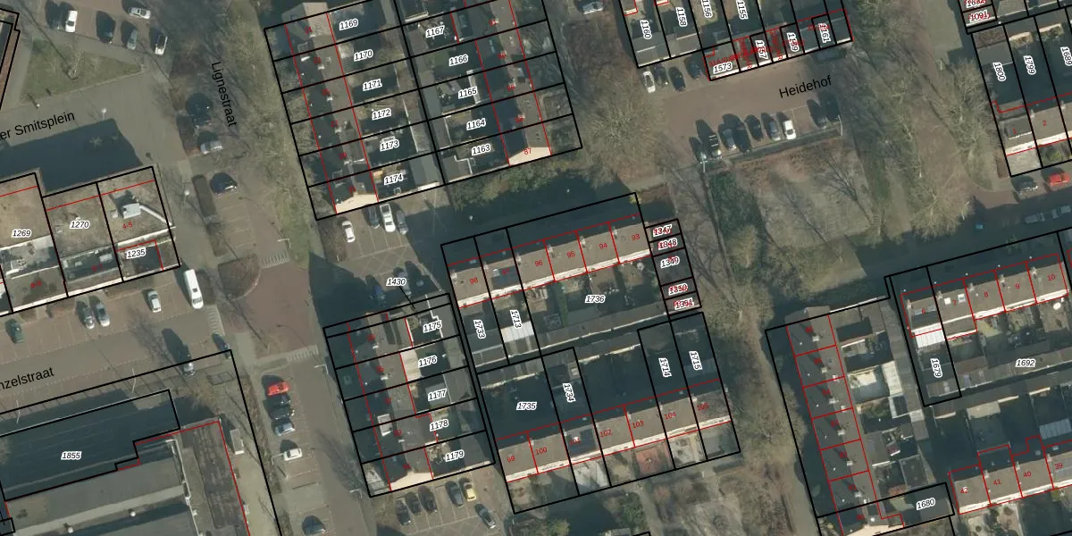 Het perceel waarop Heidehof 96 staat heeft een oppervlakte van 955 m². Dit is een groot perceel. De perceeloppervlakte wordt geregistreerd door het Kadaster. Gedetailleerde informatie over de maten van dit perceel kunt u vinden in het rapport Kadastrale kaart met maatvoering van Heidehof 96.