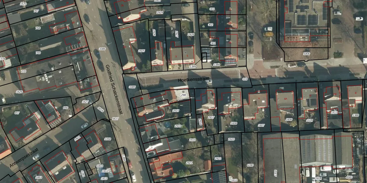 Het perceel waarop Hoefkensstraat 2-B staat heeft een oppervlakte van 185 m². Dit is een middelgroot perceel. De perceeloppervlakte wordt geregistreerd door het Kadaster. Gedetailleerde informatie over de maten van dit perceel kunt u vinden in het rapport Kadastrale kaart met maatvoering van Hoefkensstraat 2-B.