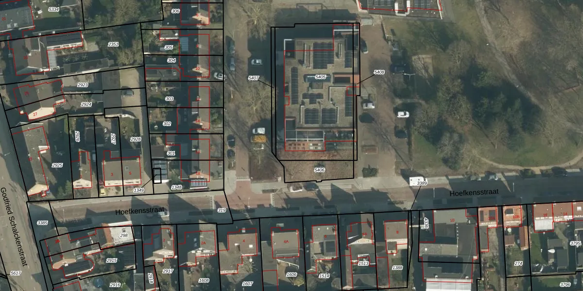 Het perceel waarop Hoefkensstraat 7-H staat heeft een oppervlakte van 1215 m². Dit is een zeer groot perceel. De perceeloppervlakte wordt geregistreerd door het Kadaster. Gedetailleerde informatie over de maten van dit perceel kunt u vinden in het rapport Kadastrale kaart met maatvoering van Hoefkensstraat 7-H.