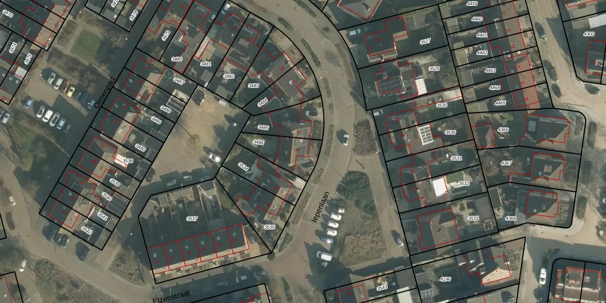 Iepenlaan 34 is gelegen op kadastraal perceel MDE01S3486. Deze kadastrale aanduiding is uniek en wordt gebruikt door het Kadaster om eigendomsrechten en andere zakelijke rechten vast te leggen. Het perceel maakt onderdeel uit van de kadastrale gemeente Made en Drimmelen.