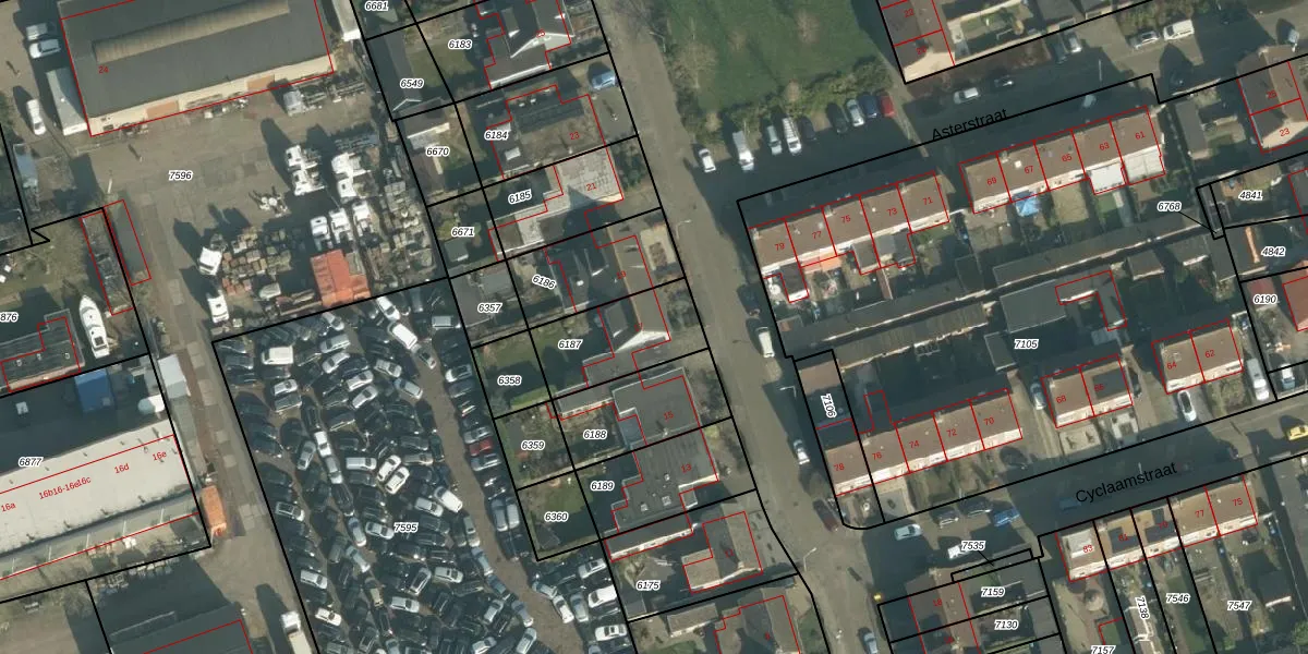 Gebruik de zoekbalk of klik op een perceel voor informatie over de adressen binnen dit perceel.
