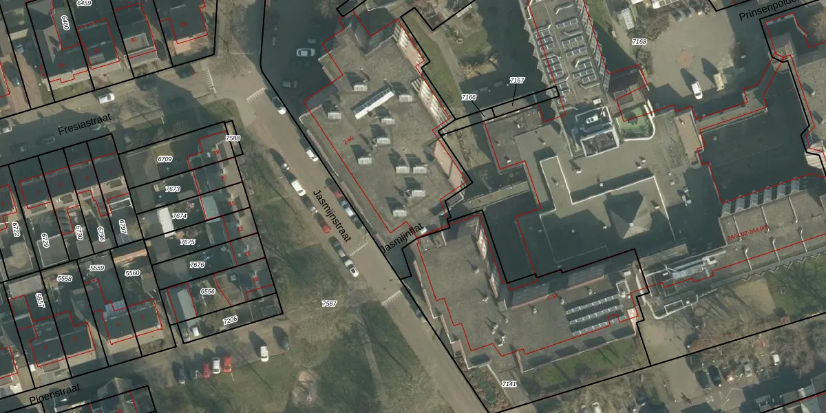 Het perceel waarop Jasmijnflat 22 staat heeft een oppervlakte van 5560 m². Dit is een zeer groot perceel. De perceeloppervlakte wordt geregistreerd door het Kadaster. Gedetailleerde informatie over de maten van dit perceel kunt u vinden in het rapport Kadastrale kaart met maatvoering van Jasmijnflat 22.