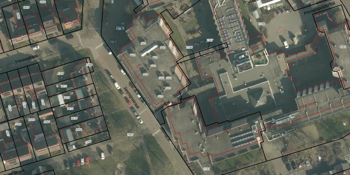 Het perceel waarop Jasmijnflat 42 staat heeft een oppervlakte van 5560 m². Dit is een zeer groot perceel. De perceeloppervlakte wordt geregistreerd door het Kadaster. Gedetailleerde informatie over de maten van dit perceel kunt u vinden in het rapport Kadastrale kaart met maatvoering van Jasmijnflat 42.