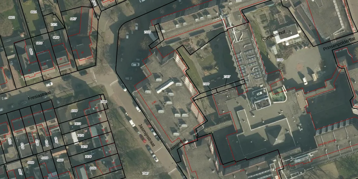 Het perceel waarop Jasmijnflat 74 staat heeft een oppervlakte van 5560 m². Dit is een zeer groot perceel. De perceeloppervlakte wordt geregistreerd door het Kadaster. Gedetailleerde informatie over de maten van dit perceel kunt u vinden in het rapport Kadastrale kaart met maatvoering van Jasmijnflat 74.