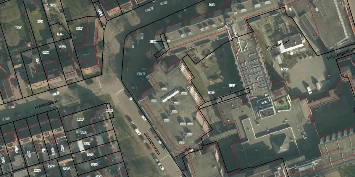 Het perceel waarop Jasmijnflat 78 staat heeft een oppervlakte van 5560 m². Dit is een zeer groot perceel. De perceeloppervlakte wordt geregistreerd door het Kadaster. Gedetailleerde informatie over de maten van dit perceel kunt u vinden in het rapport Kadastrale kaart met maatvoering van Jasmijnflat 78.