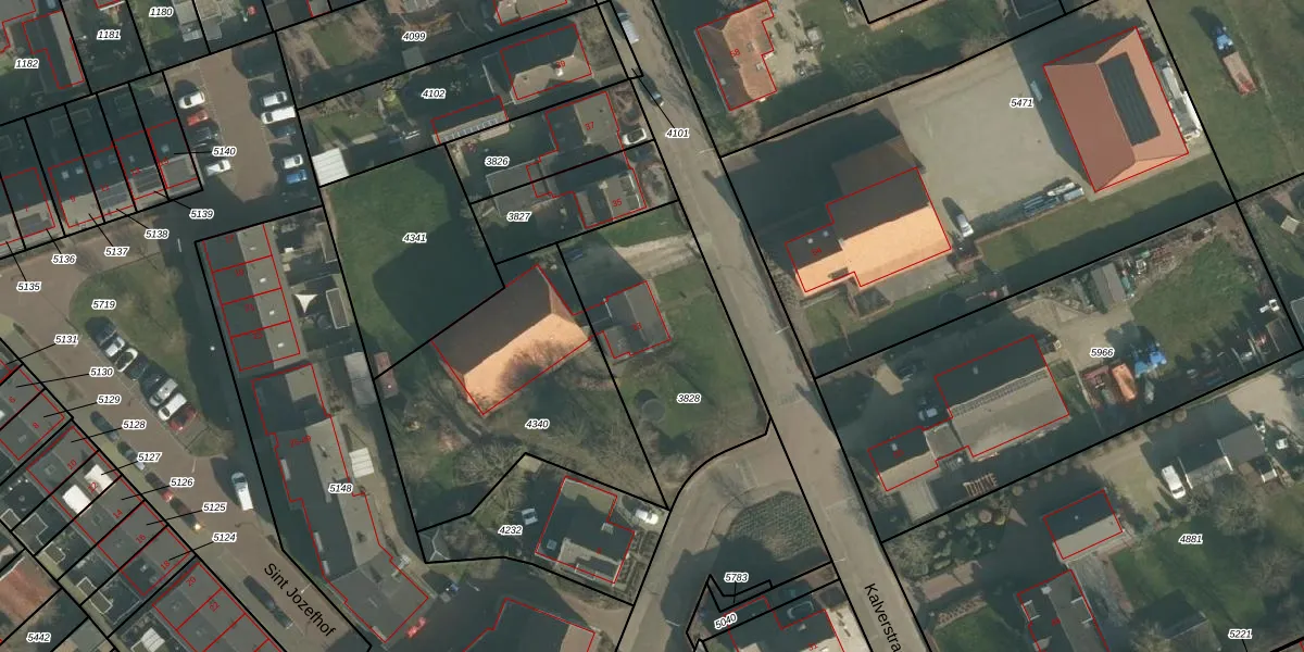 Kalverstraat 33 is gelegen op kadastraal perceel MDE01S3828. Deze kadastrale aanduiding is uniek en wordt gebruikt door het Kadaster om eigendomsrechten en andere zakelijke rechten vast te leggen. Het perceel maakt onderdeel uit van de kadastrale gemeente Made en Drimmelen.