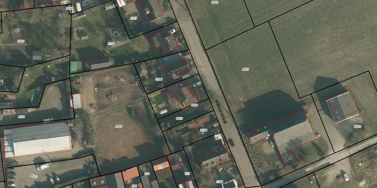 Kalverstraat 55 is gelegen op kadastraal perceel MDE01S3713. Deze kadastrale aanduiding is uniek en wordt gebruikt door het Kadaster om eigendomsrechten en andere zakelijke rechten vast te leggen. Het perceel maakt onderdeel uit van de kadastrale gemeente Made en Drimmelen.