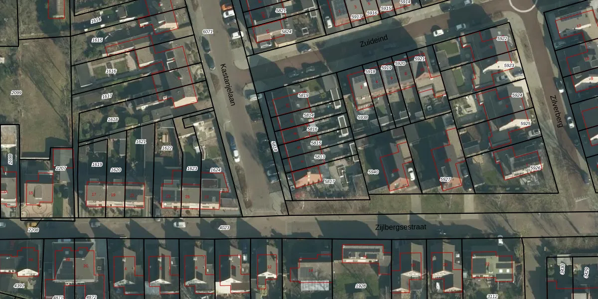 Kastanjelaan 6 is gelegen op kadastraal perceel MDE01S5815. Deze kadastrale aanduiding is uniek en wordt gebruikt door het Kadaster om eigendomsrechten en andere zakelijke rechten vast te leggen. Het perceel maakt onderdeel uit van de kadastrale gemeente Made en Drimmelen.