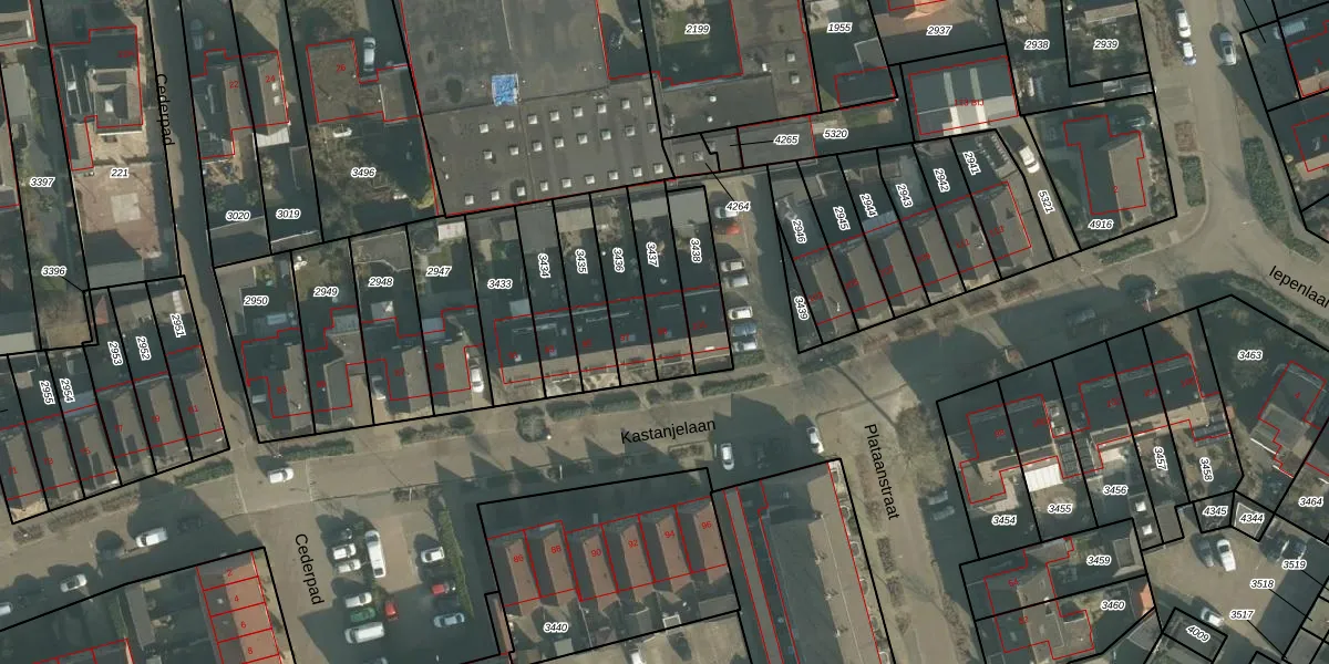 Kastanjelaan 99 is gelegen op kadastraal perceel MDE01S3437. Deze kadastrale aanduiding is uniek en wordt gebruikt door het Kadaster om eigendomsrechten en andere zakelijke rechten vast te leggen. Het perceel maakt onderdeel uit van de kadastrale gemeente Made en Drimmelen.