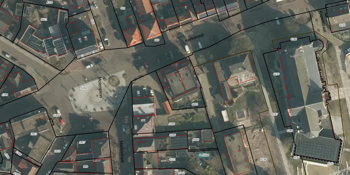 Kerkstraat 2-B is gelegen op kadastraal perceel MDE01S4491. Deze kadastrale aanduiding is uniek en wordt gebruikt door het Kadaster om eigendomsrechten en andere zakelijke rechten vast te leggen. Het perceel maakt onderdeel uit van de kadastrale gemeente Made en Drimmelen.