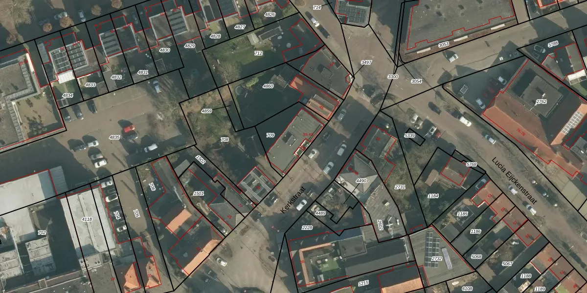 Het perceel waarop Kerkstraat 41 staat heeft een oppervlakte van 335 m². Dit is een groot perceel. De perceeloppervlakte wordt geregistreerd door het Kadaster. Gedetailleerde informatie over de maten van dit perceel kunt u vinden in het rapport Kadastrale kaart met maatvoering van Kerkstraat 41.