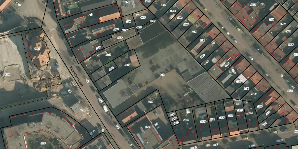 Kloosterstraat 24-B is gelegen op kadastraal perceel MDE01S6104. Deze kadastrale aanduiding is uniek en wordt gebruikt door het Kadaster om eigendomsrechten en andere zakelijke rechten vast te leggen. Het perceel maakt onderdeel uit van de kadastrale gemeente Made en Drimmelen.