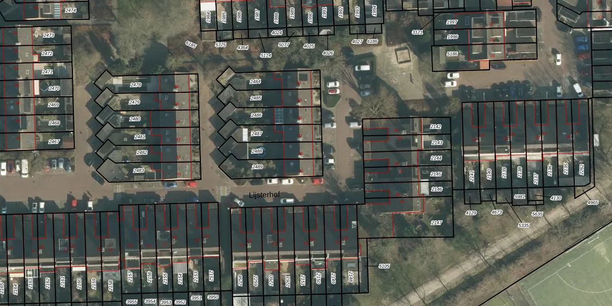Het perceel waarop Lijsterhof 36 staat heeft een oppervlakte van 185 m². Dit is een middelgroot perceel. De perceeloppervlakte wordt geregistreerd door het Kadaster. Gedetailleerde informatie over de maten van dit perceel kunt u vinden in het rapport Kadastrale kaart met maatvoering van Lijsterhof 36.
