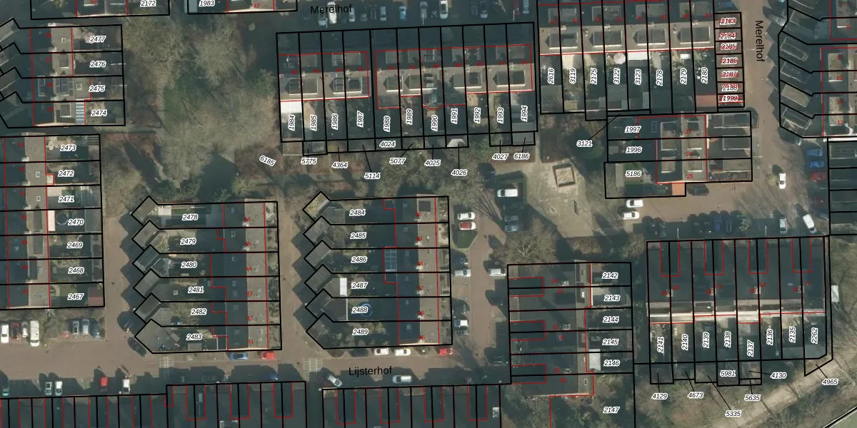 Lijsterhof 40 is gelegen op kadastraal perceel MDE01S2484. Deze kadastrale aanduiding is uniek en wordt gebruikt door het Kadaster om eigendomsrechten en andere zakelijke rechten vast te leggen. Het perceel maakt onderdeel uit van de kadastrale gemeente Made en Drimmelen.