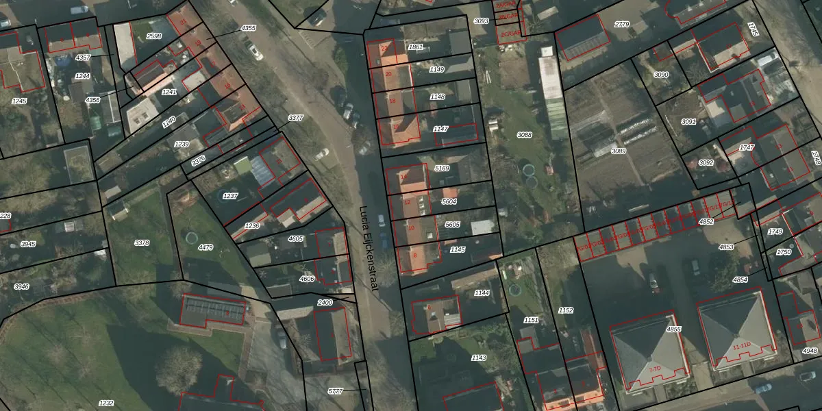 Het perceel waarop Lucia Eijckenstraat 12 staat heeft een oppervlakte van 163 m². Dit is een middelgroot perceel. De perceeloppervlakte wordt geregistreerd door het Kadaster. Gedetailleerde informatie over de maten van dit perceel kunt u vinden in het rapport Kadastrale kaart met maatvoering van Lucia Eijckenstraat 12.