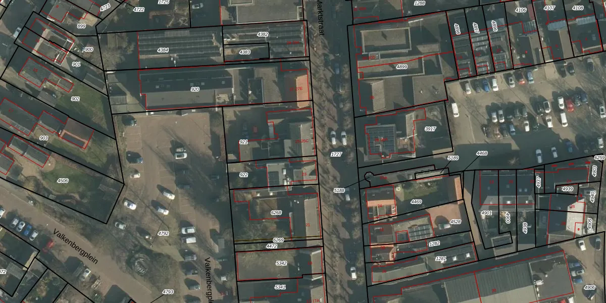 Het perceel waarop Marktstraat 25 staat heeft een oppervlakte van 550 m². Dit is een groot perceel. De perceeloppervlakte wordt geregistreerd door het Kadaster. Gedetailleerde informatie over de maten van dit perceel kunt u vinden in het rapport Kadastrale kaart met maatvoering van Marktstraat 25.