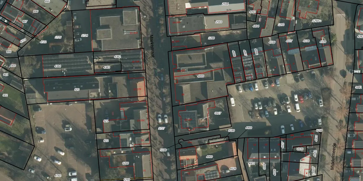 Het perceel waarop Marktstraat 28 staat heeft een oppervlakte van 997 m². Dit is een groot perceel. De perceeloppervlakte wordt geregistreerd door het Kadaster. Gedetailleerde informatie over de maten van dit perceel kunt u vinden in het rapport Kadastrale kaart met maatvoering van Marktstraat 28.