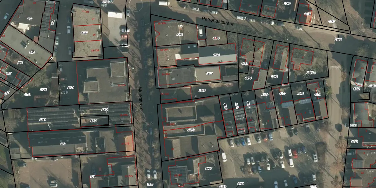 Marktstraat 32-B is gelegen op kadastraal perceel MDE01S1288. Deze kadastrale aanduiding is uniek en wordt gebruikt door het Kadaster om eigendomsrechten en andere zakelijke rechten vast te leggen. Het perceel maakt onderdeel uit van de kadastrale gemeente Made en Drimmelen.