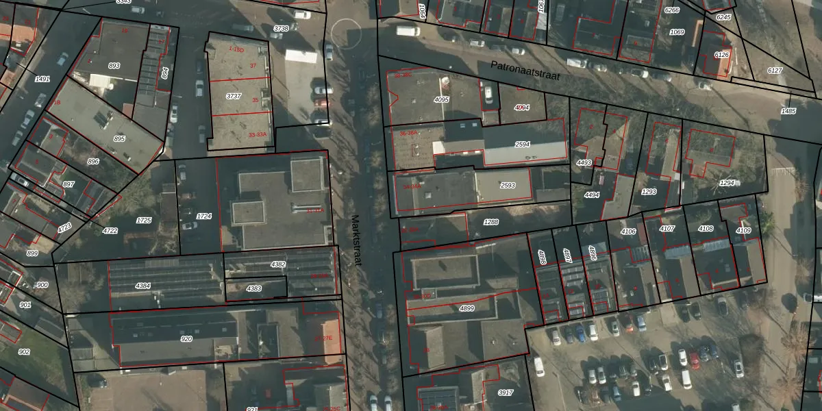 Het perceel waarop Marktstraat 34-A staat heeft een oppervlakte van 450 m². Dit is een groot perceel. De perceeloppervlakte wordt geregistreerd door het Kadaster. Gedetailleerde informatie over de maten van dit perceel kunt u vinden in het rapport Kadastrale kaart met maatvoering van Marktstraat 34-A.