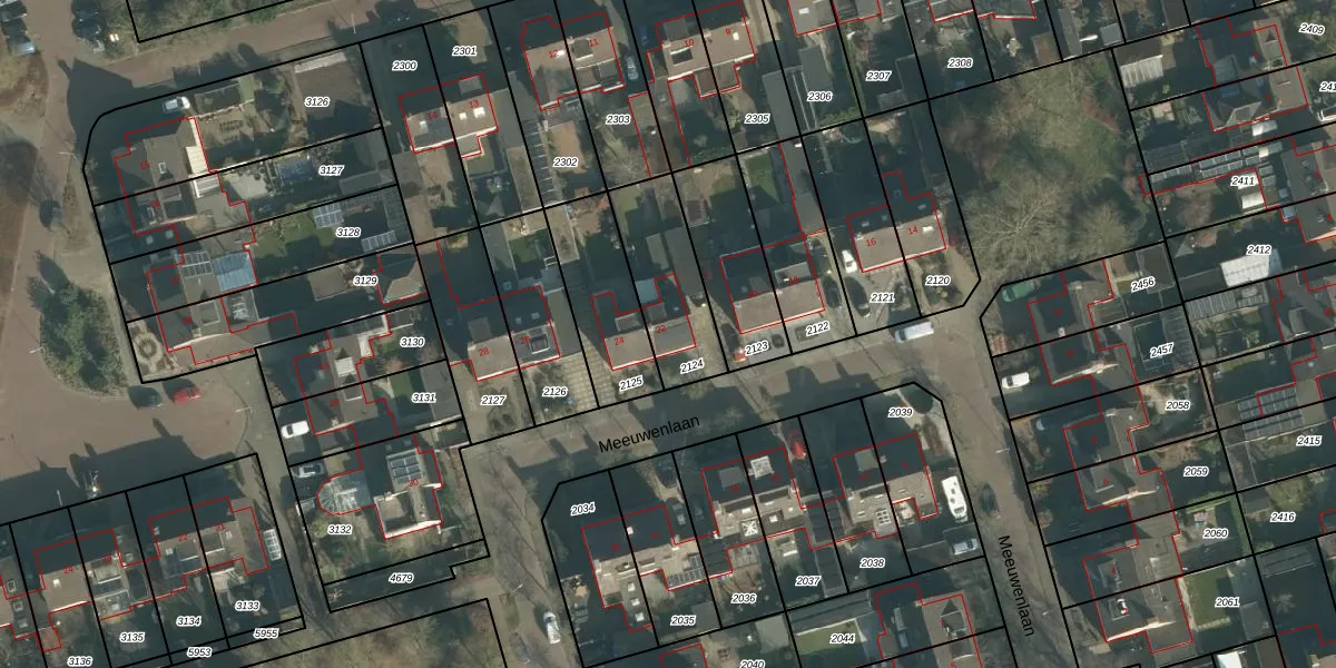 Het perceel waarop Meeuwenlaan 22 staat heeft een oppervlakte van 310 m². Dit is een groot perceel. De perceeloppervlakte wordt geregistreerd door het Kadaster. Gedetailleerde informatie over de maten van dit perceel kunt u vinden in het rapport Kadastrale kaart met maatvoering van Meeuwenlaan 22.
