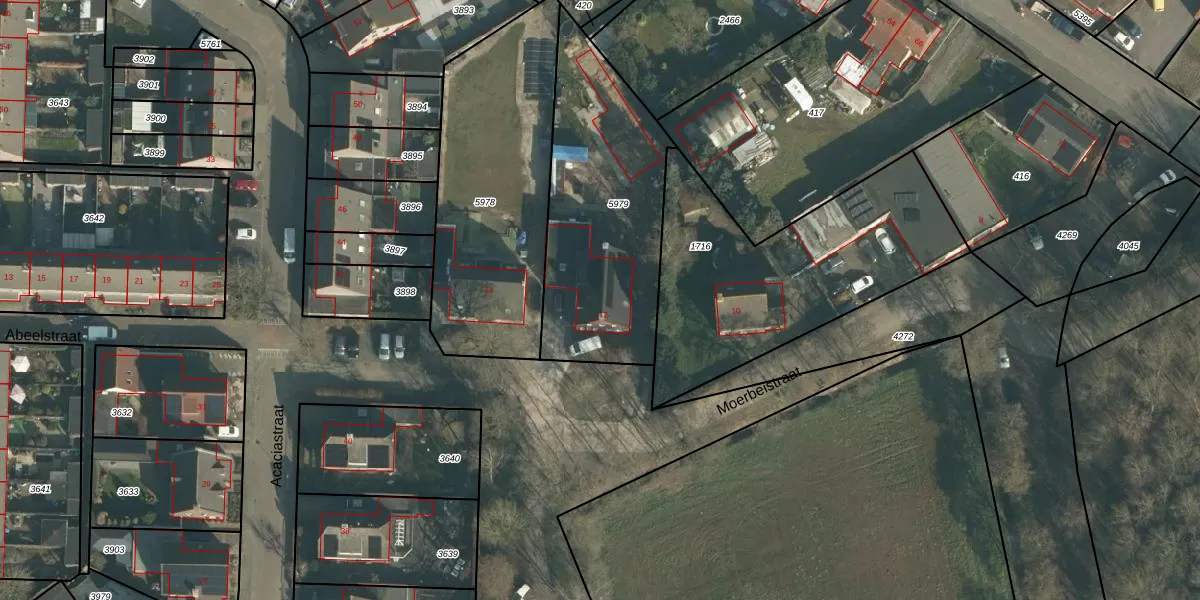 Moerbeistraat 12 is gelegen op kadastraal perceel MDE01S5979. Deze kadastrale aanduiding is uniek en wordt gebruikt door het Kadaster om eigendomsrechten en andere zakelijke rechten vast te leggen. Het perceel maakt onderdeel uit van de kadastrale gemeente Made en Drimmelen.