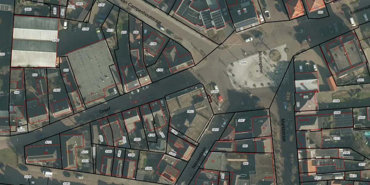 Het perceel waarop Molenplein 12 staat heeft een oppervlakte van 561 m². Dit is een groot perceel. De perceeloppervlakte wordt geregistreerd door het Kadaster. Gedetailleerde informatie over de maten van dit perceel kunt u vinden in het rapport Kadastrale kaart met maatvoering van Molenplein 12.