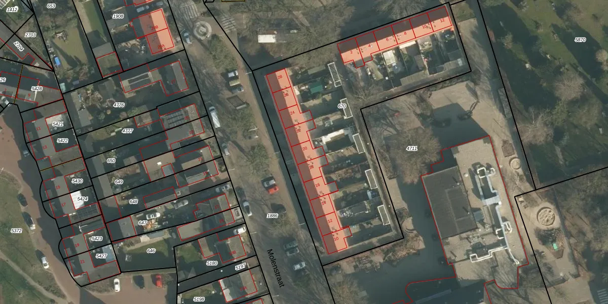 Het perceel waarop Molenstraat 20 staat heeft een oppervlakte van 2900 m². Dit is een zeer groot perceel. De perceeloppervlakte wordt geregistreerd door het Kadaster. Gedetailleerde informatie over de maten van dit perceel kunt u vinden in het rapport Kadastrale kaart met maatvoering van Molenstraat 20.