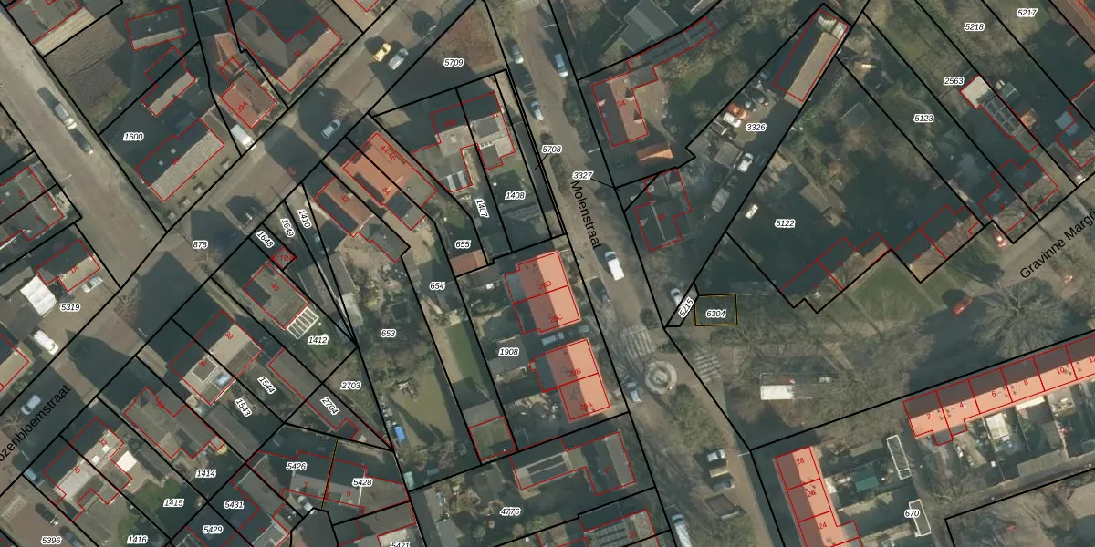 Het perceel waarop Molenstraat 29-D staat heeft een oppervlakte van 740 m². Dit is een groot perceel. De perceeloppervlakte wordt geregistreerd door het Kadaster. Gedetailleerde informatie over de maten van dit perceel kunt u vinden in het rapport Kadastrale kaart met maatvoering van Molenstraat 29-D.