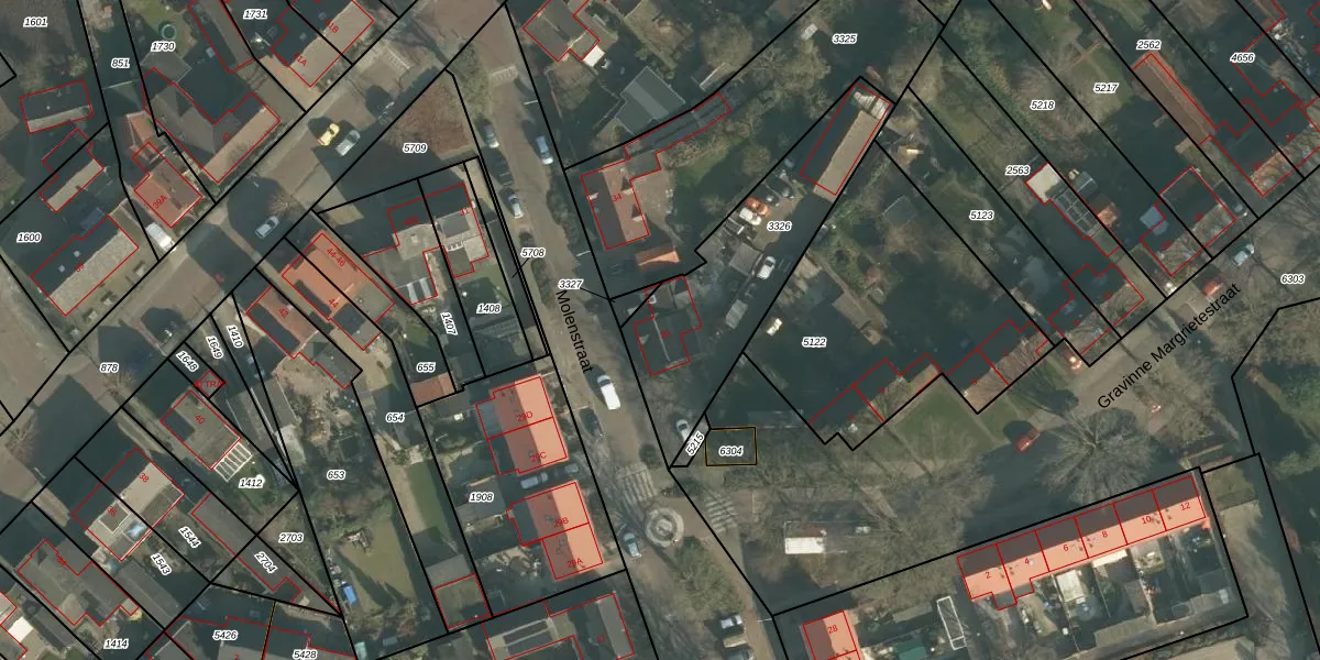 Het perceel waarop Molenstraat 30 staat heeft een oppervlakte van 742 m². Dit is een groot perceel. De perceeloppervlakte wordt geregistreerd door het Kadaster. Gedetailleerde informatie over de maten van dit perceel kunt u vinden in het rapport Kadastrale kaart met maatvoering van Molenstraat 30.