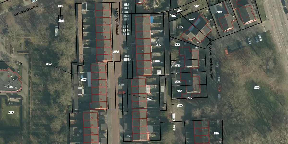 Het perceel waarop Nachtegaalstraat 15 staat heeft een oppervlakte van 2037 m². Dit is een zeer groot perceel. De perceeloppervlakte wordt geregistreerd door het Kadaster. Gedetailleerde informatie over de maten van dit perceel kunt u vinden in het rapport Kadastrale kaart met maatvoering van Nachtegaalstraat 15.