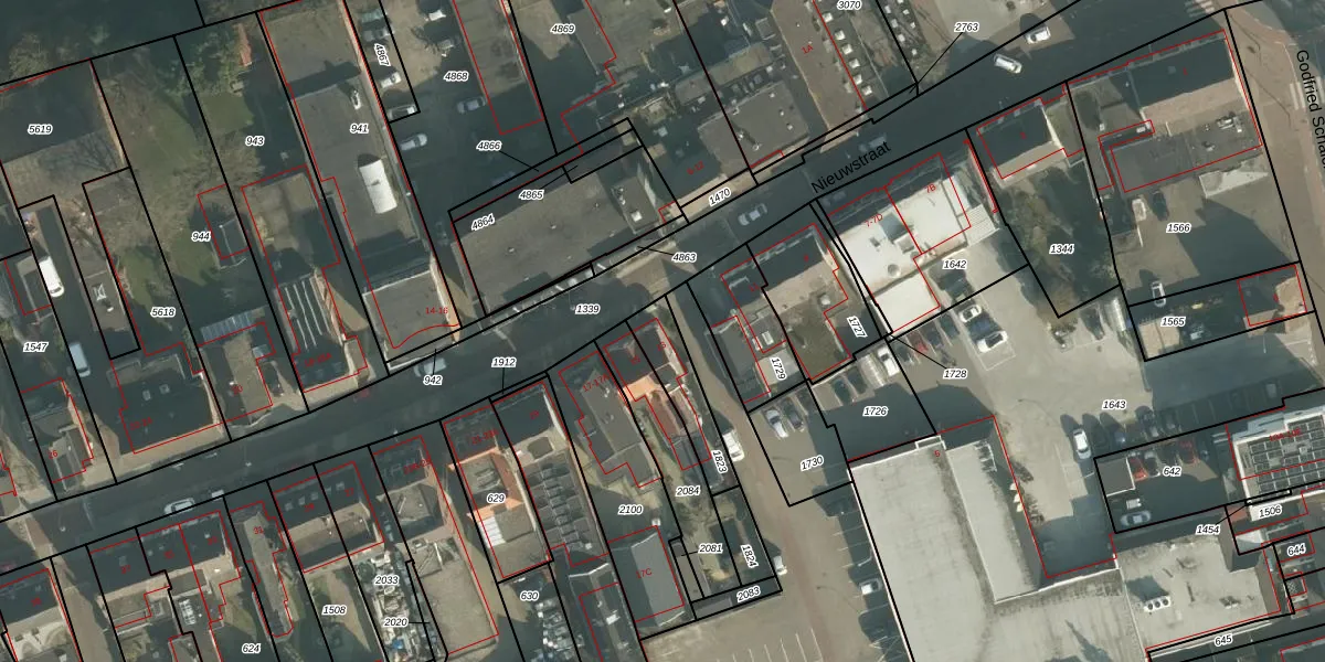 Het perceel waarop Nieuwstraat 13 staat heeft een oppervlakte van 168 m². Dit is een middelgroot perceel. De perceeloppervlakte wordt geregistreerd door het Kadaster. Gedetailleerde informatie over de maten van dit perceel kunt u vinden in het rapport Kadastrale kaart met maatvoering van Nieuwstraat 13.
